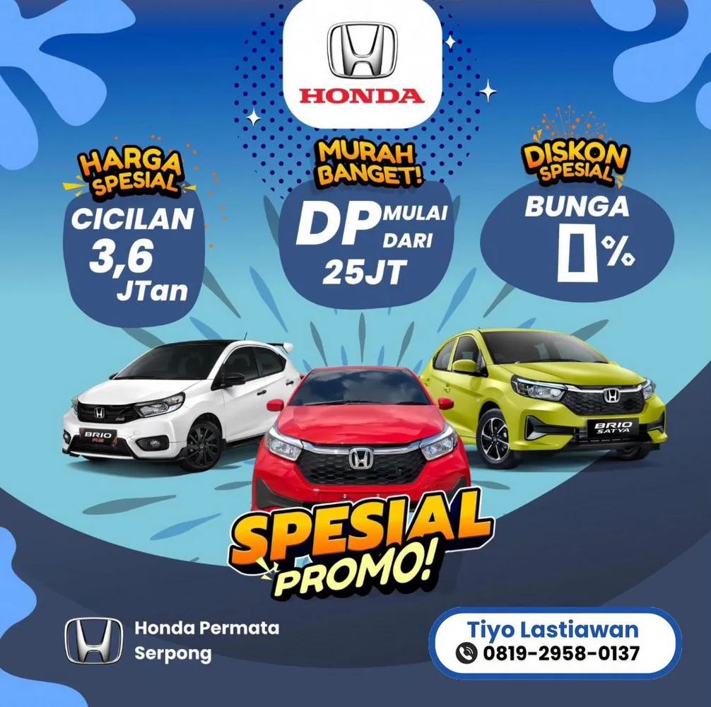 Dapatkan penawaran mobil Honda terbaru dengan DP ringan, cicilan rendah, dan diskon besar hanya di Dealer Resmi Honda Tangerang. Hubungi Tiyo, Sales Honda terpercaya untuk simulasi kredit & promo terbaik hari ini!